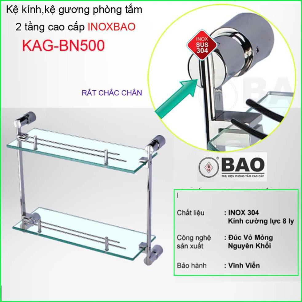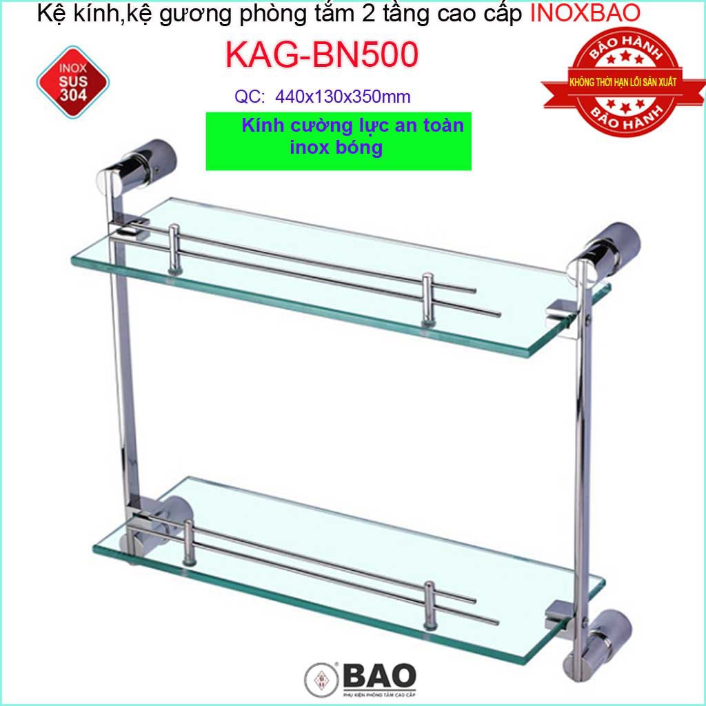 Kệ kính phòng tắm 2 tầng Inox Bảo KAG-BN500