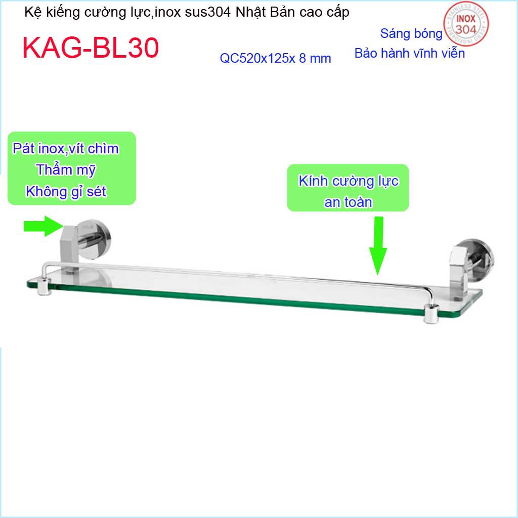 Nhà Cửa & Đời Sống > Đồ dùng phòng tắm > Kệ để đồ phòng tắm || Kệ kính phòng tắm, Phụ kiện phòng tắm cao cấp Kace,Kệ kính cường lực inox 304 Nhật Bản KAG-BL30Còn hàng