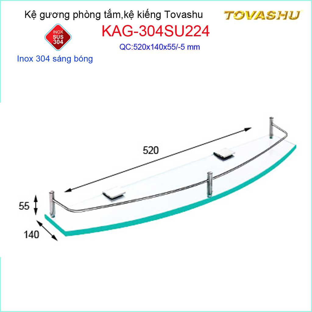Kệ kính phòng tắm Tovashu KAG-304SU224, kệ gương cường lực Inox Nhật cao cấpKích thước dài 520mmx cao rộng 140mm x cao 55 mm