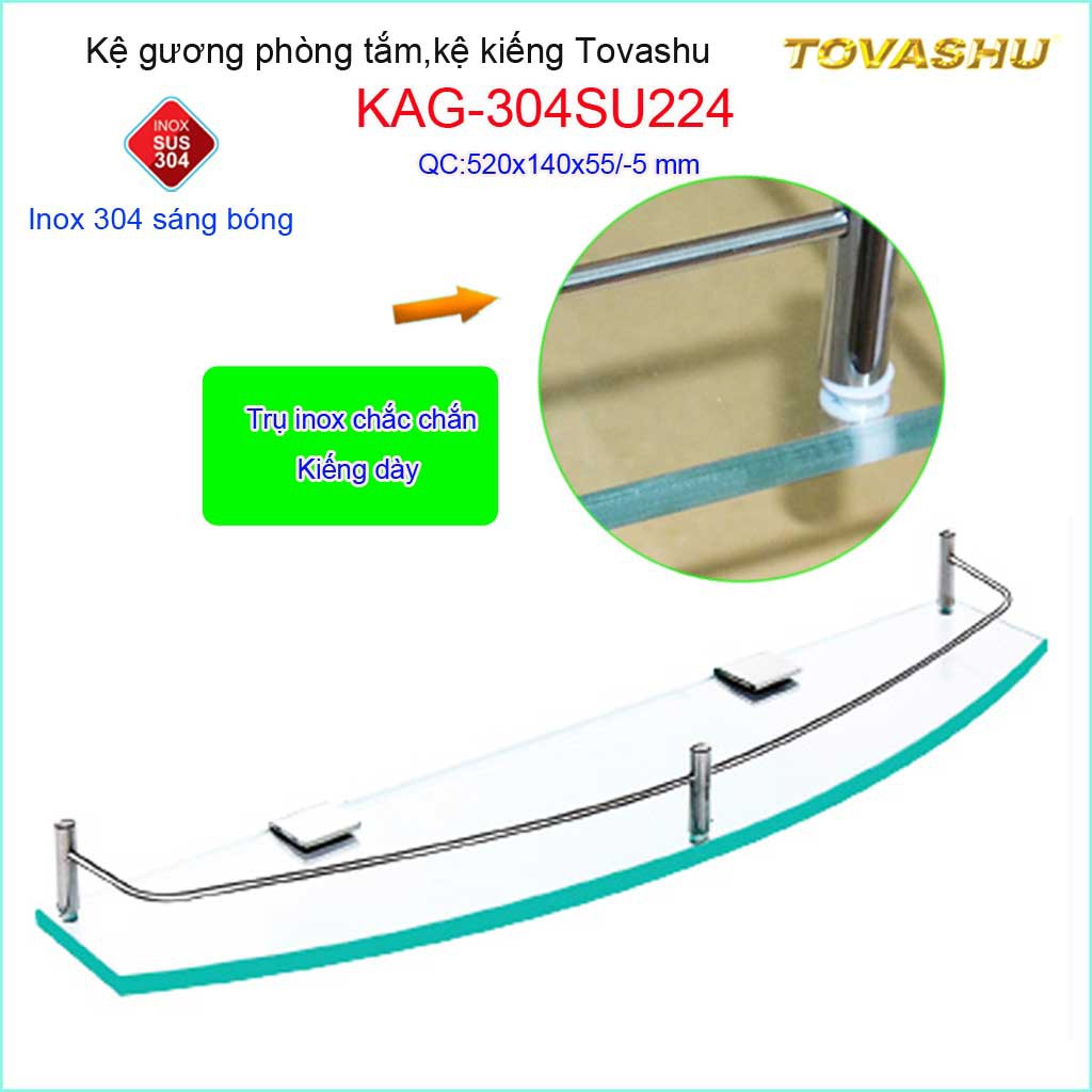 Kệ kính phòng tắm Tovashu KAG-304SU224, kệ gương cường lực Inox Nhật cao cấp