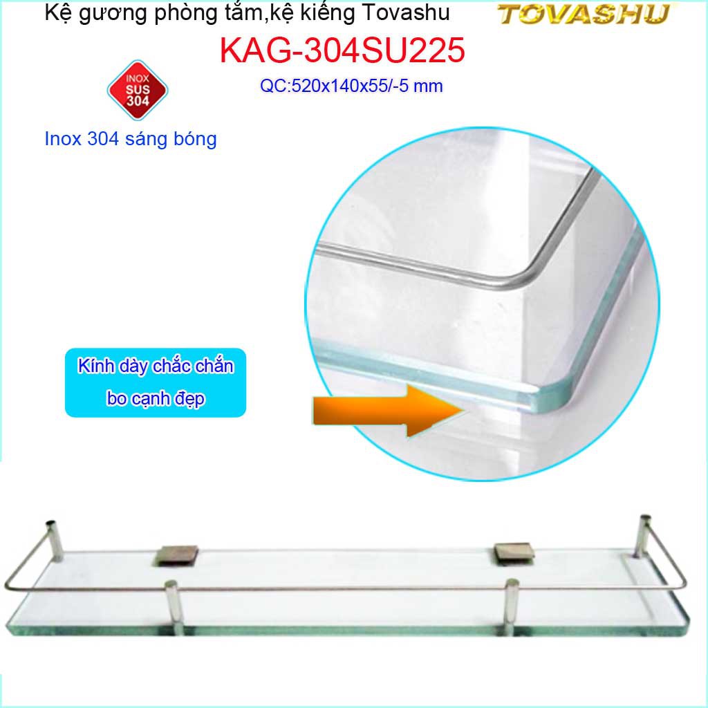 Kệ kính phòng tắm Tovashu KAG-304SU225, kệ gương cường lực Inox Nhật cao cấp
