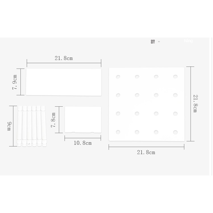 + 1 bảng lỗ: 21,8 x 21,8 cm