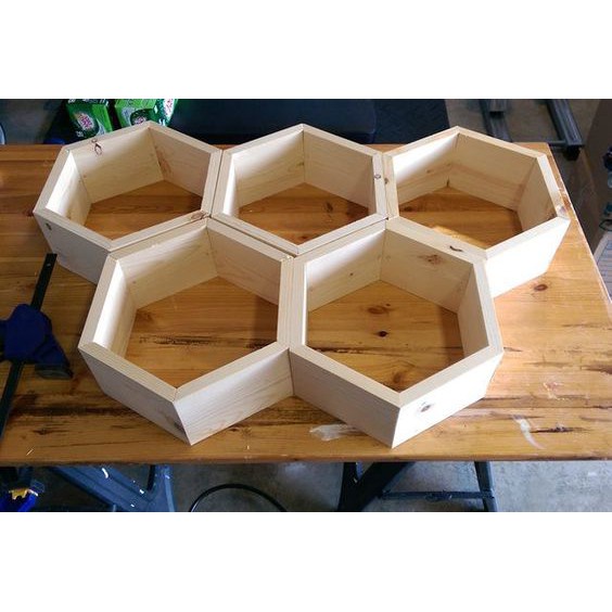 Kệ lục giác tổ ong treo tường gỗ thông trang trí nhà cửa