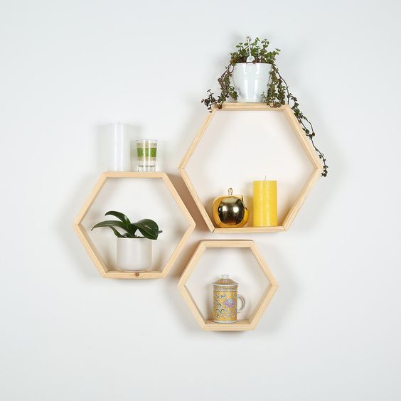 Giới thiệu Kệ lục giác tổ ong treo tường gỗ thông trang trí nhà cửa