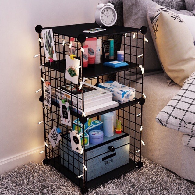 Thông Tin Chi Tiết Sản Phẩm: Kệ Lưới Đầu Giường 3 Ô Tiện Ích, Kệ Decor, Giá Sách Đa Năng Size 35x35cm- Tủ 3 Ô bao gồm: 6 Lưới 35x35 +4 Nhựa 35x35+ 1 Combo Chốt Chia Ngăn +1 Búa Gỗ