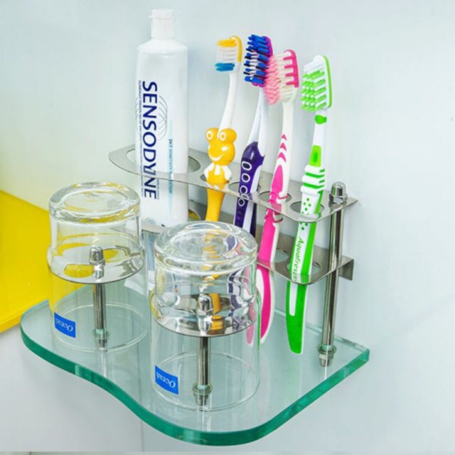 Nhà cửa & Đời sống > Đồ dùng phòng tắm > Kệ đựng bàn chải, kệ nhả kem đánh răng || Kệ ly bàn chải phòng tắm cao cấp inox304 100%, không rỉ sét( tặng kèm 2 ly thuỷ tinh)Còn hàng