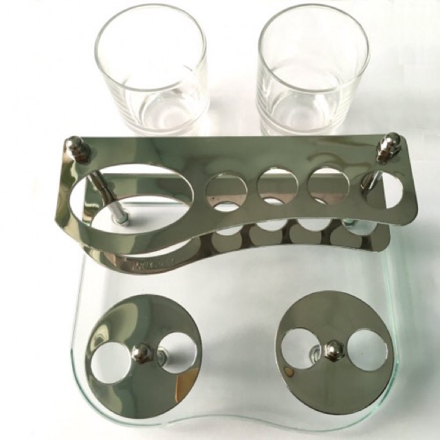 Kệ ly bàn chải phòng tắm cao cấp inox304 100%, không rỉ sét( tặng kèm 2 ly thuỷ tinh)