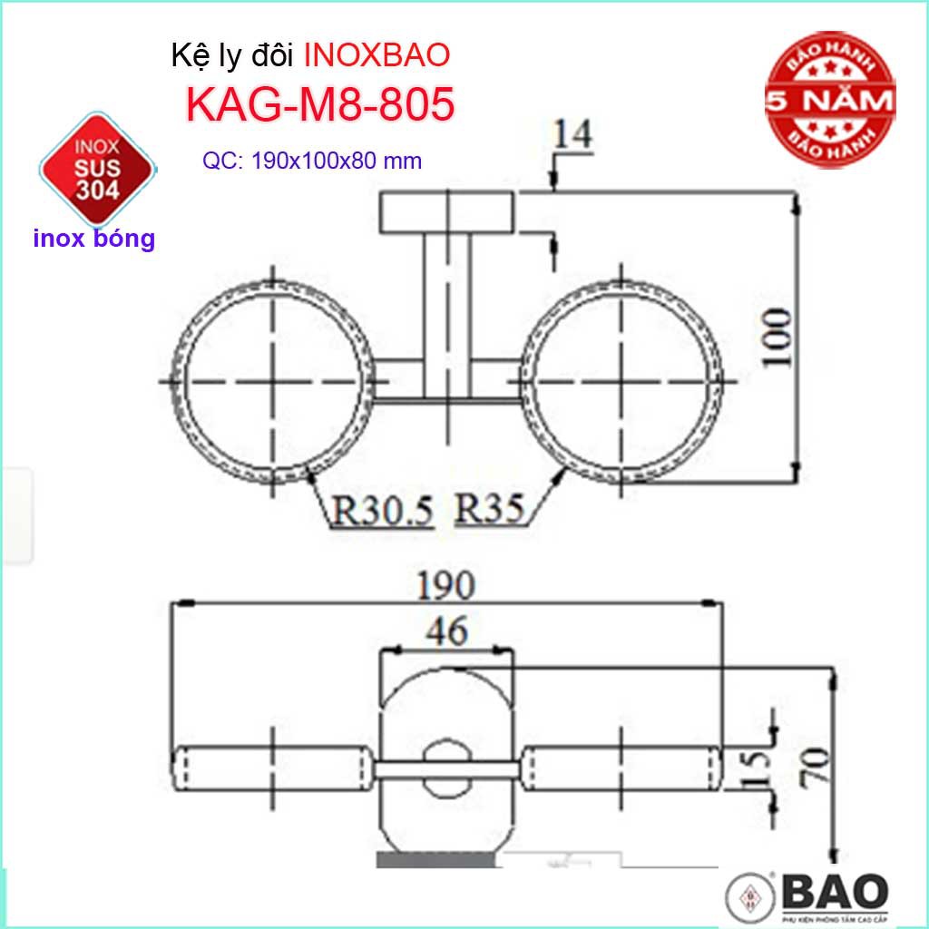 Kệ ly đôi Inox Bảo, kệ ly Inox SUS304 KAG-M8-805 công nghệ sản xuất hiện đại, thiết kế sắc nét từng góc cạnh, kỹ lưỡng đến từng chi tiết tạo nên một sản phẩm hoàn hảo thích hợp cho mọi phòng tắm sang trọng, mẫu mã sắc sảo không khác hàng nhập châu Âu