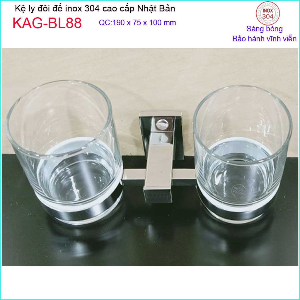 Giới thiệu Kệ ly đôi inox kace, kệ để ly bàn chải inox 304 Nhật Bản KAG-BL88-ly đôi
