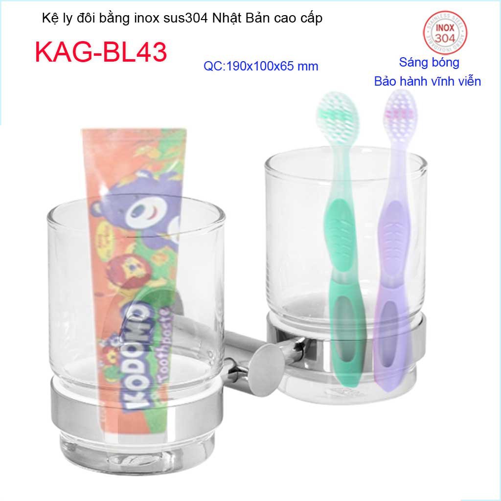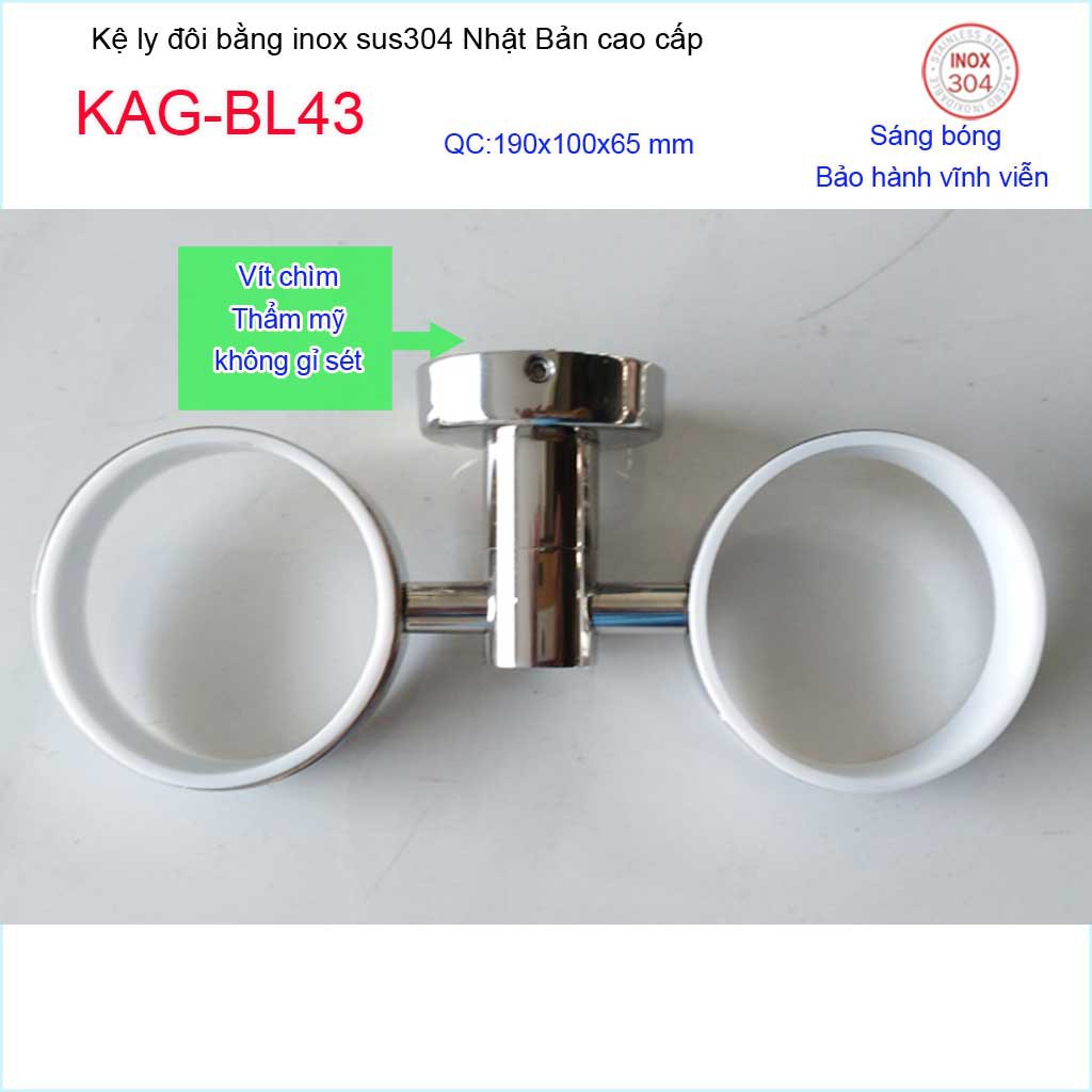 Kệ ly đôi inox kace KAG-BL43, kệ để ly bàn chải inox 304 Nhật Bản đế tròn cao cấp thiết kế tuyệt đẹp