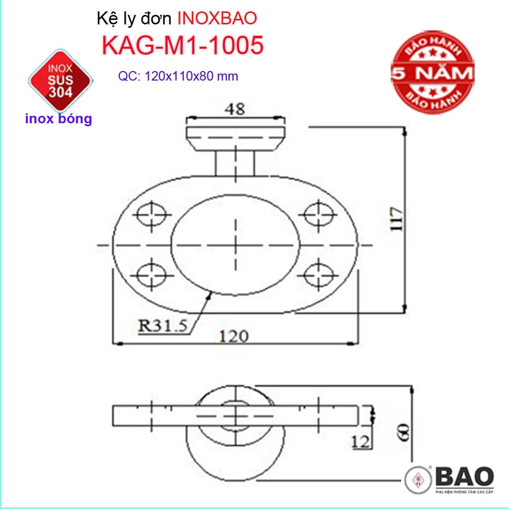 Kệ ly đơn Inox Bảo, kệ ly Inox SUS304 KAG-M1-1005 công nghệ sản xuất hiện đại, thiết kế sắc nét từng góc cạnh, kỹ lưỡng đến từng chi tiết tạo nên một sản phẩm hoàn hảo thích hợp cho mọi phòng tắm sang trọng, mẫu mã sắc sảo không khác hàng nhập châu Âu