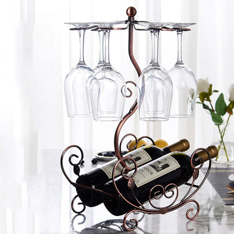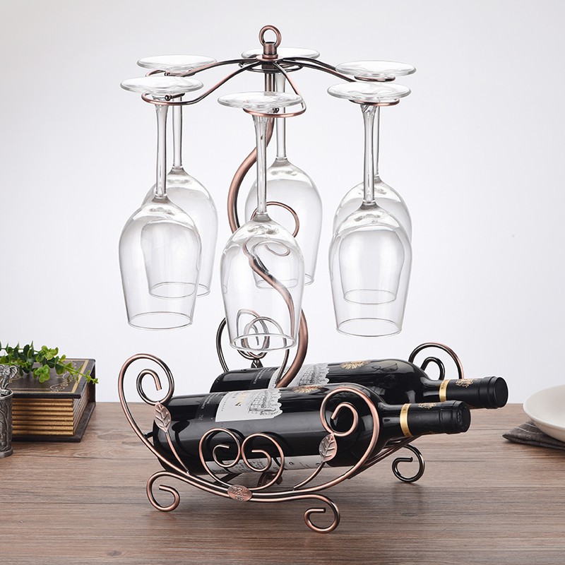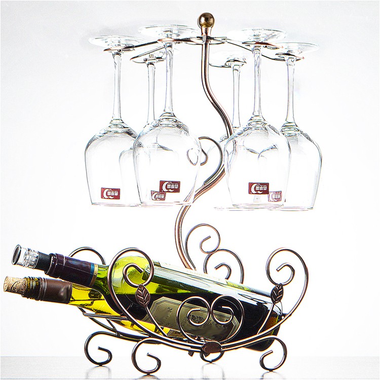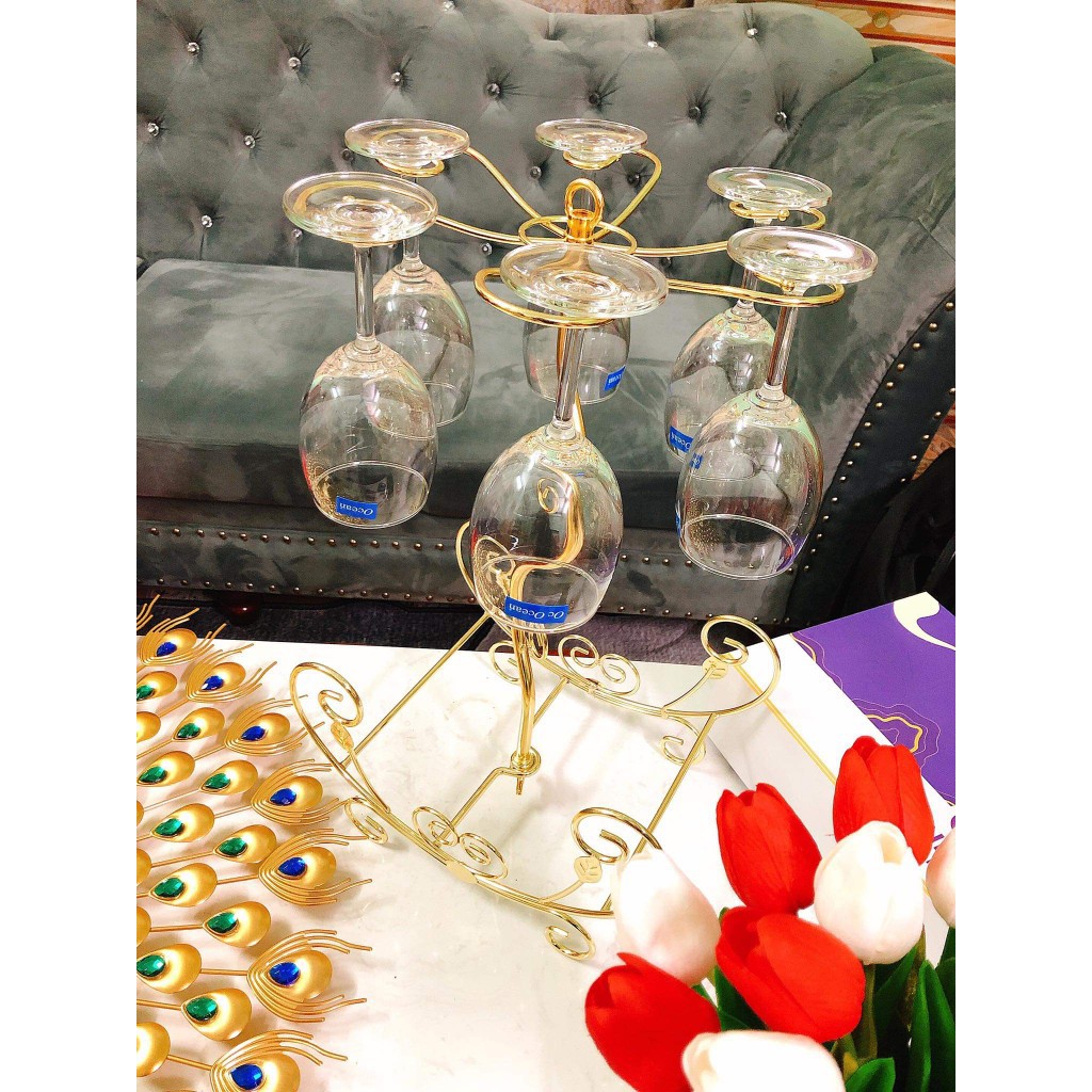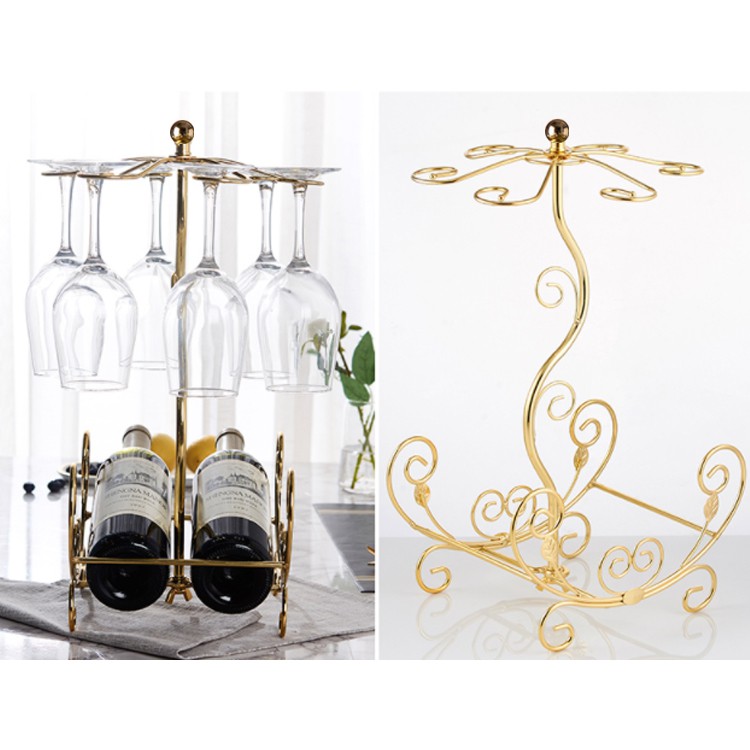 Kệ ly rượu vang phong cách cổ điển Loại 6 ly Giá treo ly vang kèm kệ rượu vang décor phòng khách