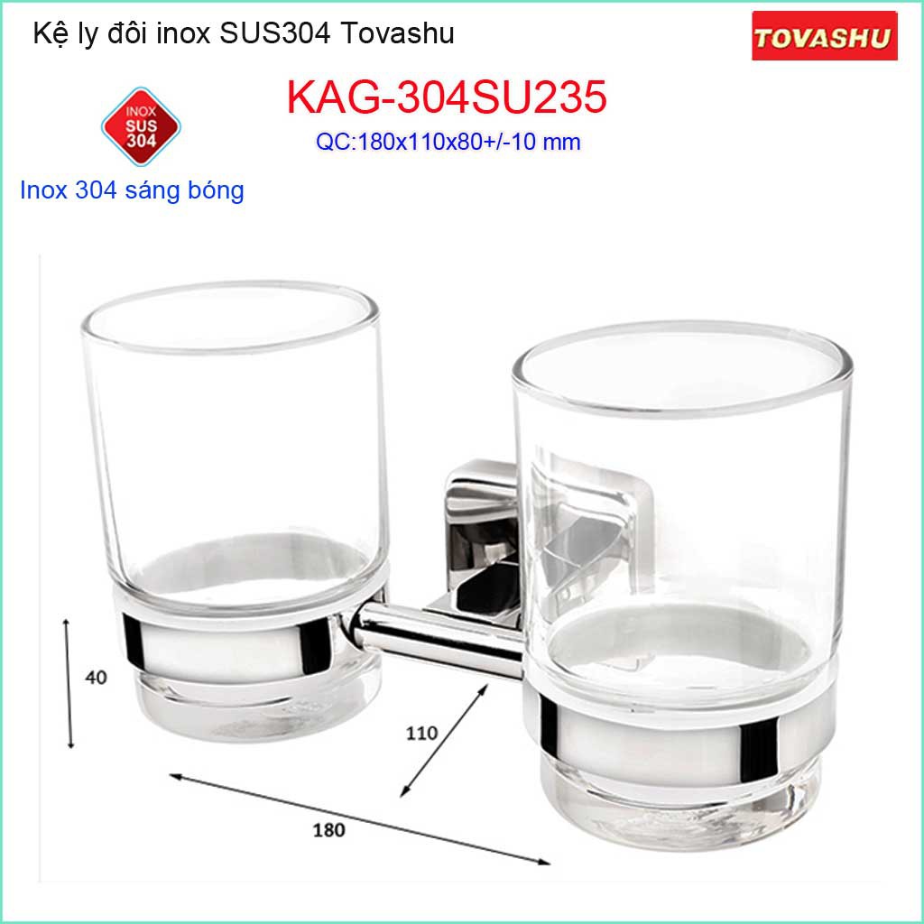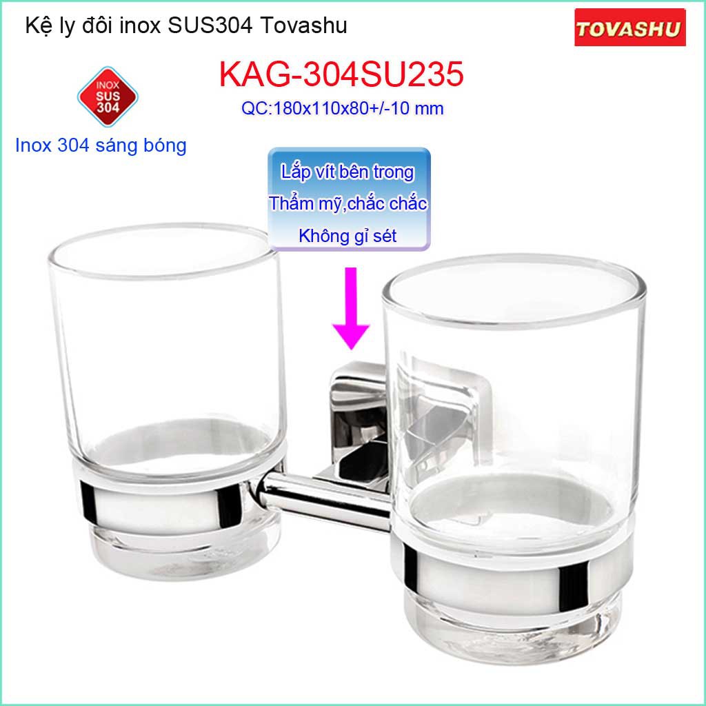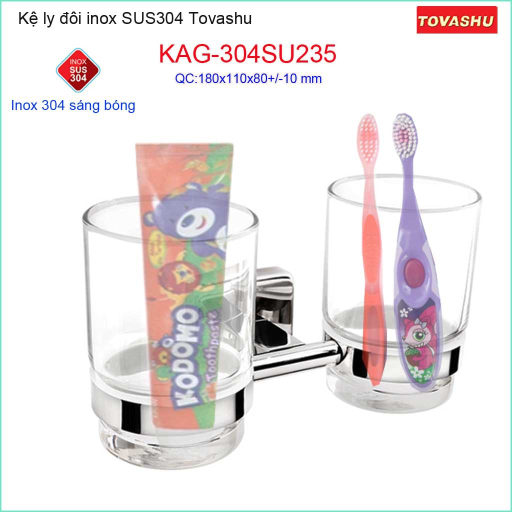 Kệ Ly Tovashu KAG-304SU235, kệ ly đôi đánh răng Inox SUS304 Nhật cao cấpChất liệu: Inox SUS304 cao cấp Nhật Bản, sáng bóng theo thời gian,độ bóng bề mặt cao, hạn chế bám bẩn trở lại