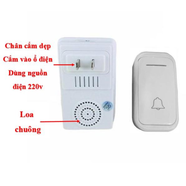 Chuông Cửa Không Dây 38 kiều chuông DB658 Chống NướcSản phẩm sử dụng sóng radio và kết nối không dây giữa nút nhấn chuông và chuông báo bằng sóng radio, xuyên vật cản với độ nhạy cao, nút nhấn chuông sử dụng pin 23A và chuông sử dụng nguồn điện 220V, tiện lợi và dễ sử dụng, kết hợp với nút nhấn bằng cách cho học để nhận cùng tần số..