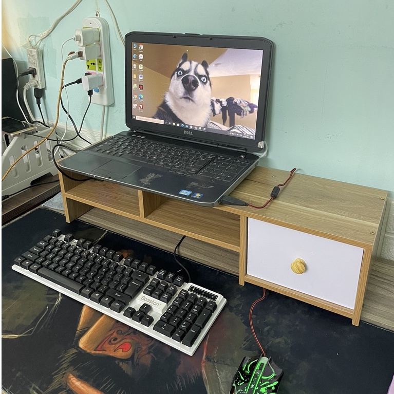 Kệ màn hình máy tính kệ để laptop kệ gỗ bàn làm việc có ngăn kéo 70x20x17cm
