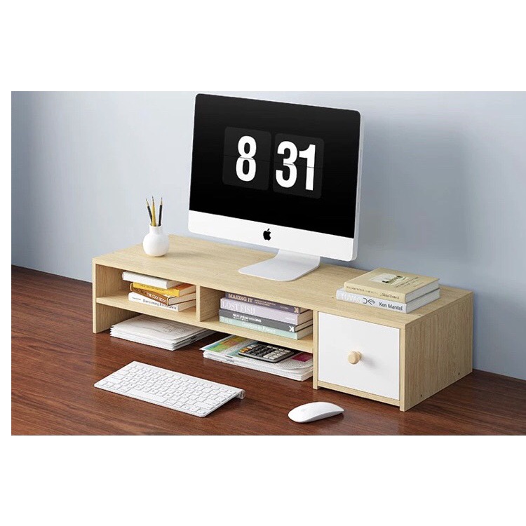 Nhà cửa & Đời sống > Sắp xếp nhà cửa > Kệ sách để bàn || Kệ màn hình máy tính kệ gỗ để bàn làm việc kèm ngăn kéo giá sách gỗ MDF giá đựng laptop có ngăn tủCòn hàng