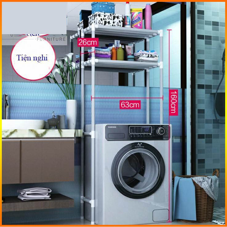 kệ máy giặt, kệ bồn cầu kệ nhà tắm tiện dụngGiá kệ hai tầng đặt trên máy giặt giúp tiết kiệm không gian và sắp xếp gọn hơn. Giúp mở rộng thêm không gian khu giặt. Sản phẩm tháo lắp đễ dàng.