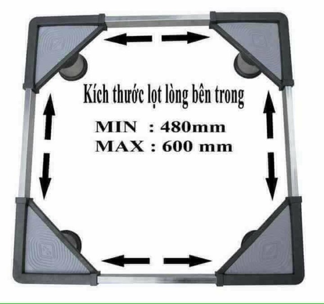 ✔Kệ có thể thay đổi được cả chiều dài và chiều rộng từ 42-63cm tùy theo kích thước máy giặt, tủ lạnh. Chiều cao của kệ 10,5 cm