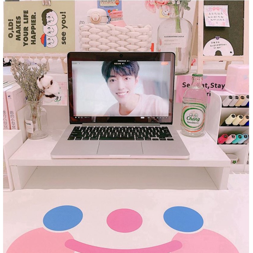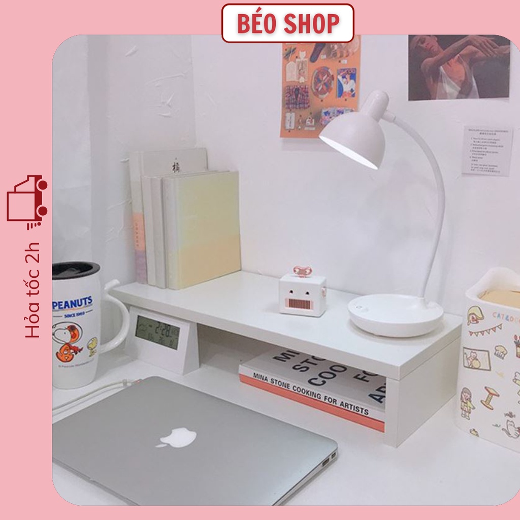 - Kệ gỗ màu trắng decor bàn học/ bàn làm việc đây. Gỗ MDF xịn xò, màu trắng trang nhã, chịu lực 40kg, để kê màn hình máy tính cho ngang tầm mắt, bên dưới vẫn để được đồ dùng cá nhân, sách vở gọn gàng