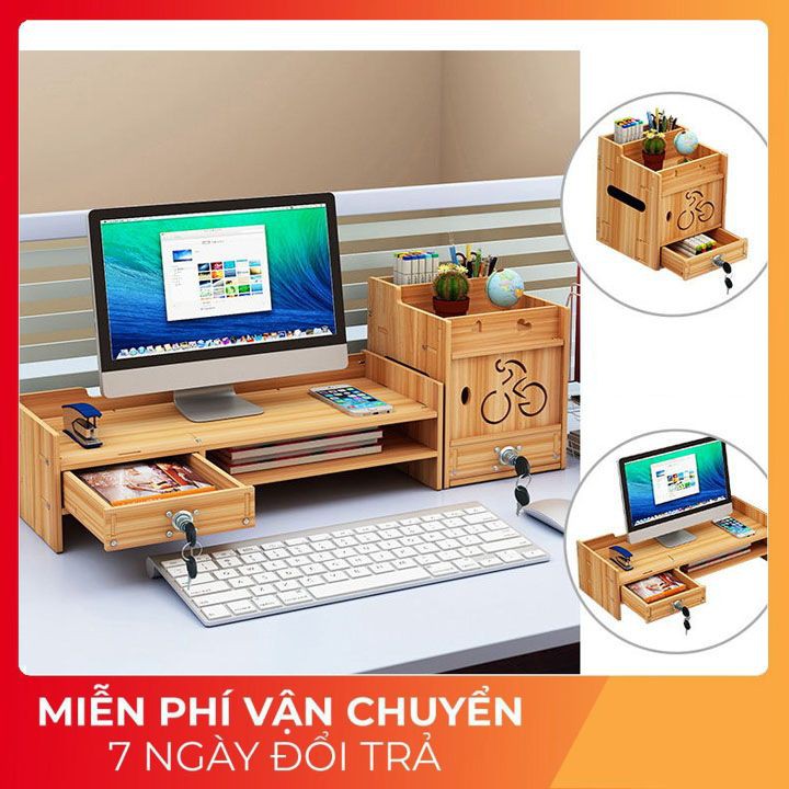 Combo Giá Kệ máy tính và tài liệu văn phòng để bàn làm việc bằng gỗ kèm ngăn kéo có khóa Giá Kệ gỗ lắp ghép bàn học sinh có nhiều màu sắc.