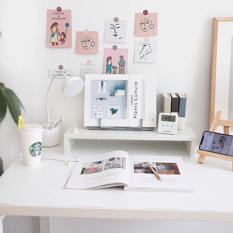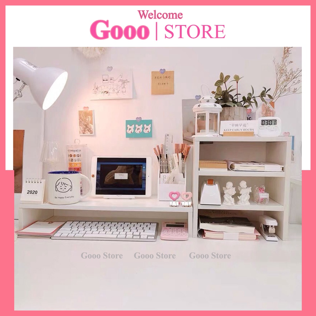 Kệ máy tính mini decor bàn học, bàn làm việc phong cách Hàn Quốc