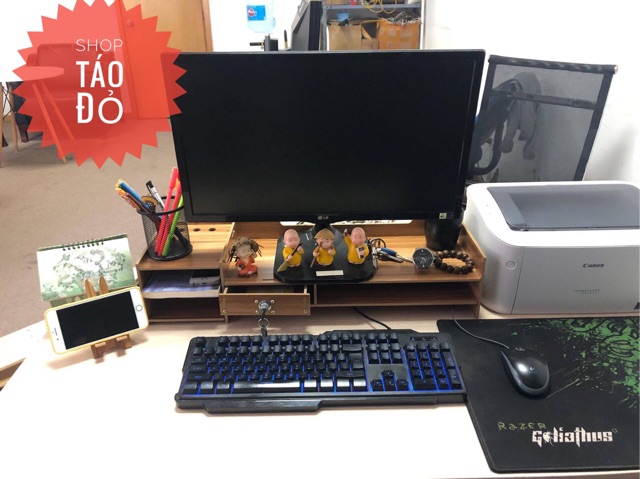 Giới thiệu Kệ Máy Tính TẶNG GIÁ ĐỠ ĐIỆN THOẠI Giá Để Tài Liệu Bằng Gỗ Có Ngăn Kéo Nhỏ Kèm ổ Khóa