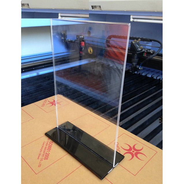 Thân là bảng mica trong suốt hiển thị cả 2 mặt kích thước 21cm x 29.8cm.