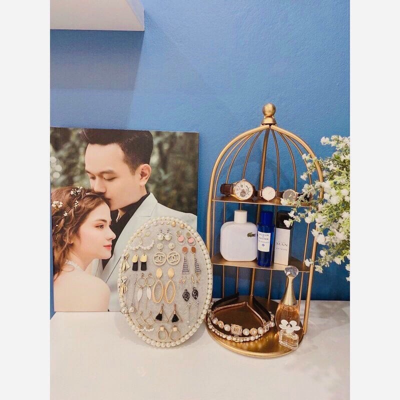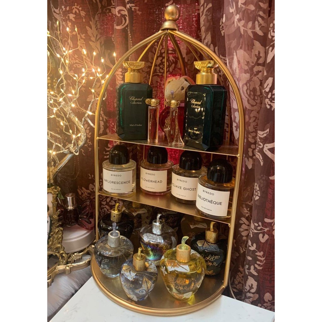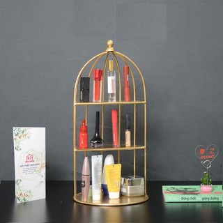 Kệ Mĩ Phâm Lồng Chim Để Bàn 3 Tầng Để Chai Lọ Mĩ Phẩm Mạ Màu Siêu Xịn