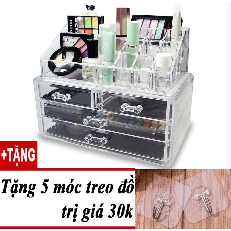 Nhà Cửa & Đời Sống > Tủ đựng & Hộp lưu trữ > Kệ đựng đồ đa năng || Kệ mica đựng đồ trang điểm + 5 móc dán tườngCòn hàng