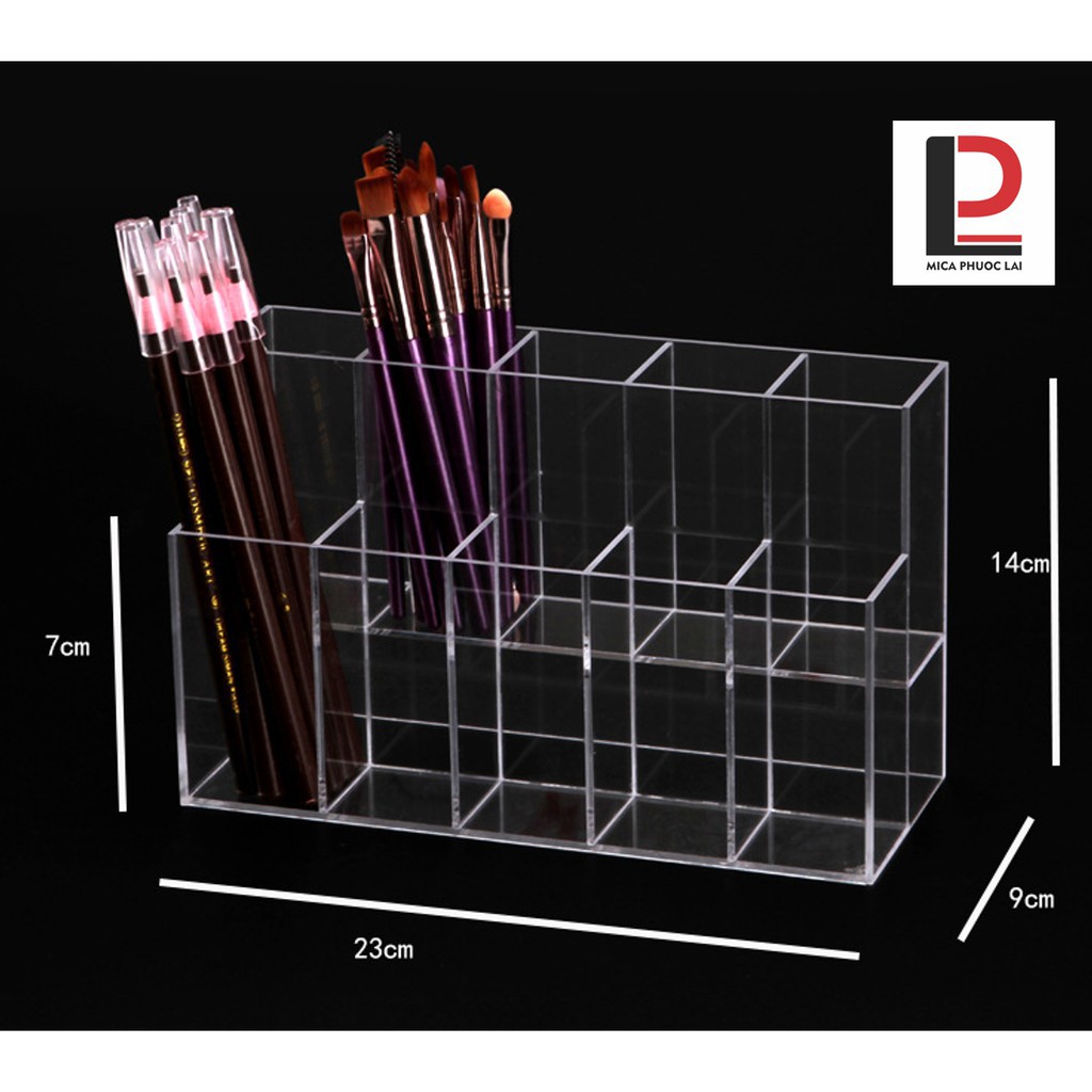 Kệ bút mica được thiết kế để đựng bút, ngoài mục đích trưng bày sản phẩm bút, kệ bút với thiết kế nhiều ngăn còn có tác dụng phân loại bút theo mẫu mã.