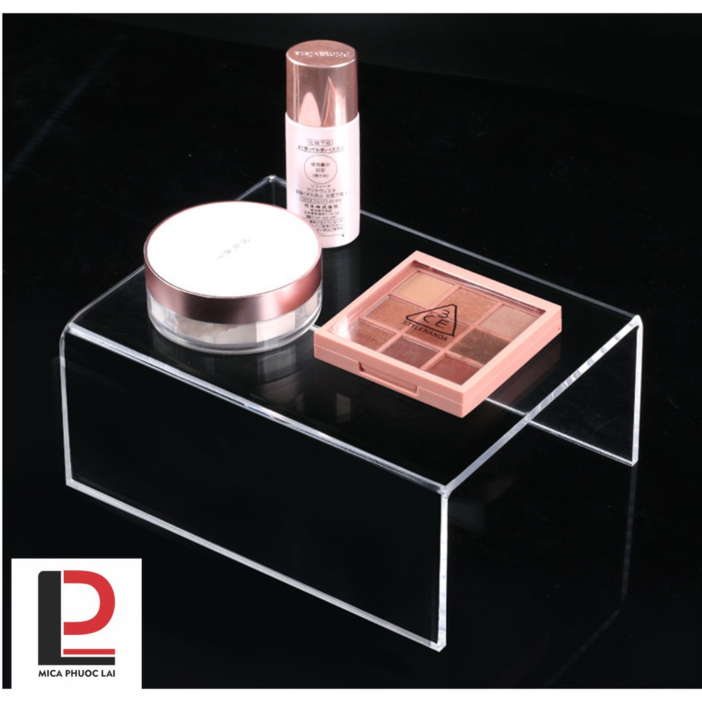 Kệ mica trưng bày chữ U được sử dụng rộng rãi trong việc trưng bày các sản phẩm về trang sức, mỹ phẩm cũng như sản phẩm nội thất gia đình.