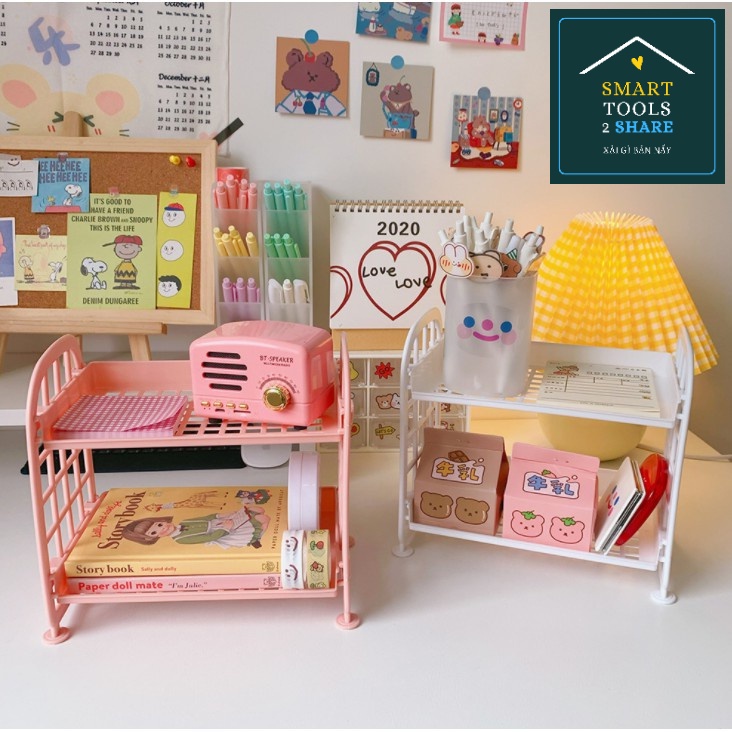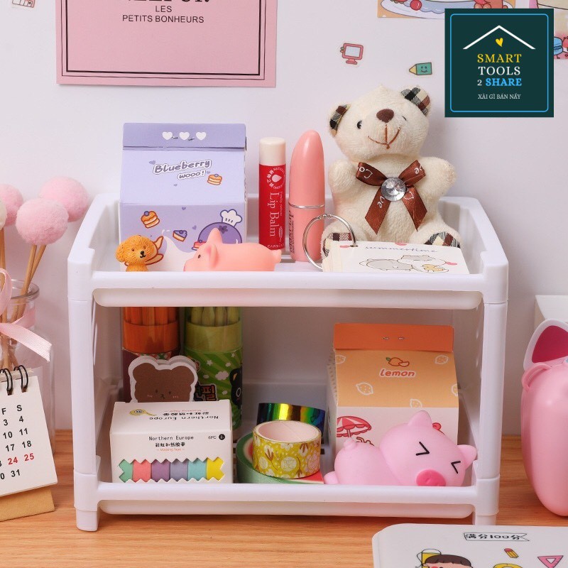 Kệ Mini 2 Tầng Để Đồ Đa Năng, Kệ Nhựa Để Bàn Trang Trí Tiện Lợi