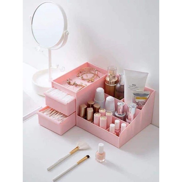 - Kệ để đồ mỹ phẩm đa năng được làm bằng chất liệu nhựa an toàn, được thiết kế hợp lý với 3 tầng, 2 ngăn . Hộp kích thước lớn, có thêm ngăn kéo, để được nhiều đồ tiện dụng.