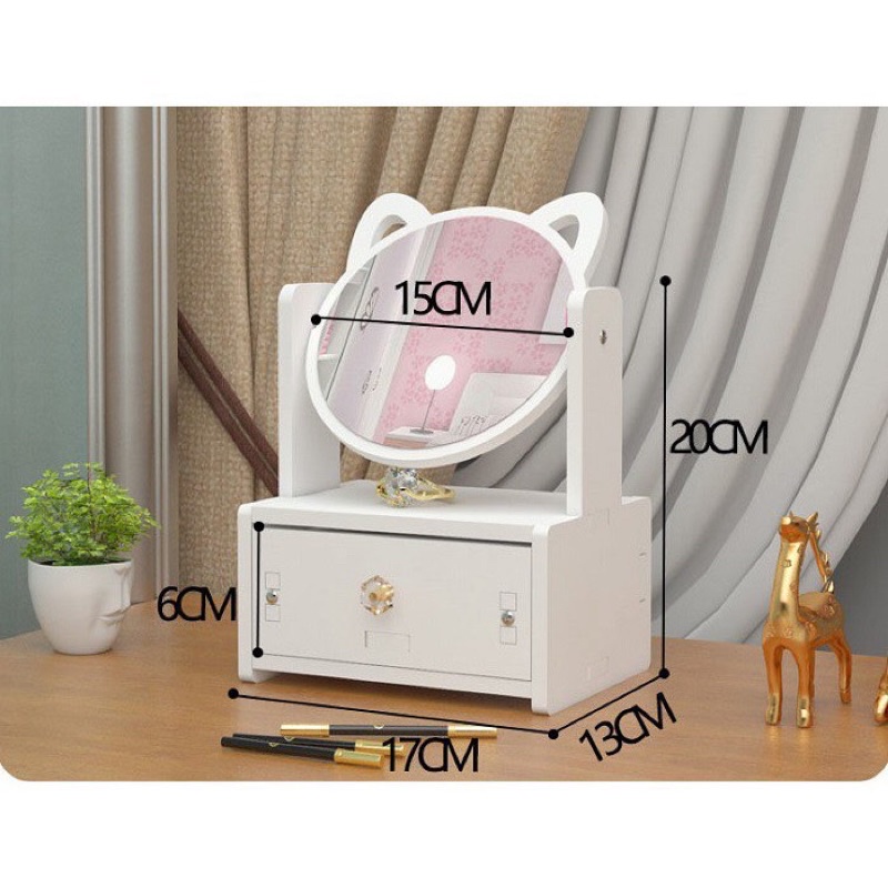 KỆ MỸ PHẨM 2 NGĂN CÓ GƯƠNG HÌNH MÈO