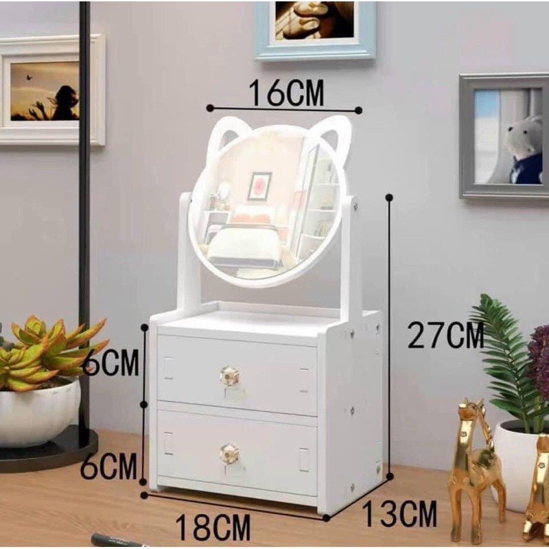 ❣️ Kệ Mỹ Phẩm Gỗ Nhựa Kèm Gương Tai Mèo❣️ Hàng Nội Địa Trung