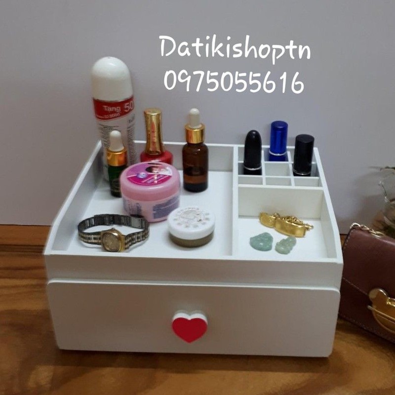 Nhà cửa & Đời sống > Trang trí nhà cửa > Khác || Kệ mỹ phẩm 25cm màu trắng 9 ô son núm tim hồngCòn hàng