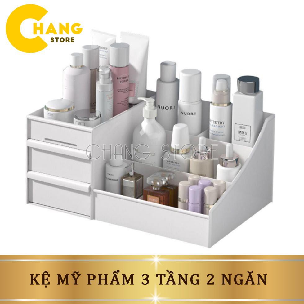 Kệ mỹ phẩm 3 tầng 2 ngăn kéo đựng đồ trang điểm tiện dụng - Tủ đựng mỹ phẩm, trang sức