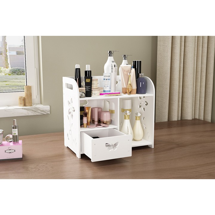 Kệ Mỹ Phẩm Để Bàn với thiết kế nhỏ gọn, ấn tượng rất thích hợp cho những không gian diện tích chật hẹp. Kích thước nhỏ gọn nhưng Kệ mỹ phẩm để bàn vẫn đáp ứng tốt đầy đủ mọi nhu cầu sử dụng của khách hàng với ngăn chứa đồ tiện lợi.