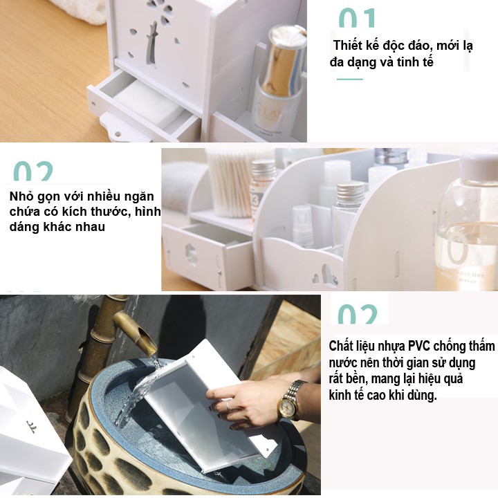 Kệ mỹ phẩm bằng nhựa PVC thiết kế có khay khăn giấy NK04