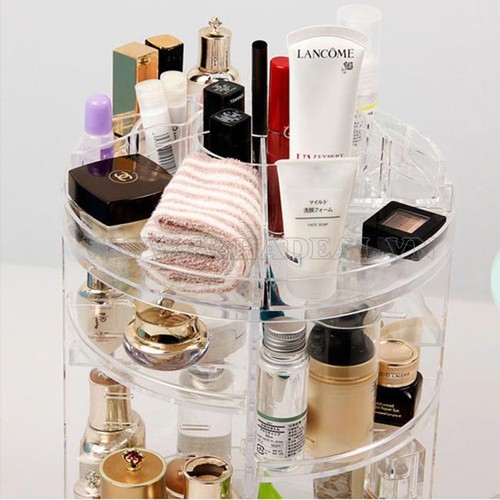 Kệ Đựng Mỹ Phẩm Trong Suốt Hình Tròn Xoay 360 Độ