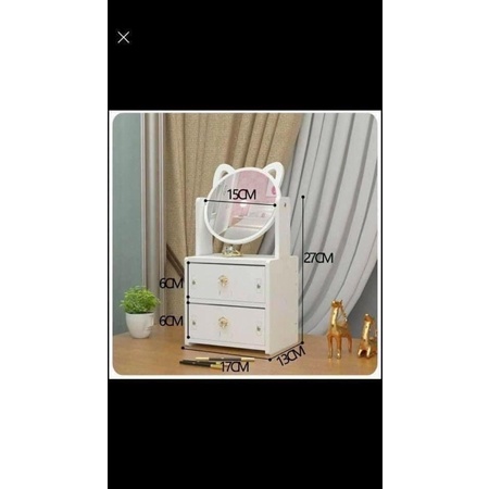 Kệ mỹ phẩm 2 tầng có gương tai mèo dễ thương