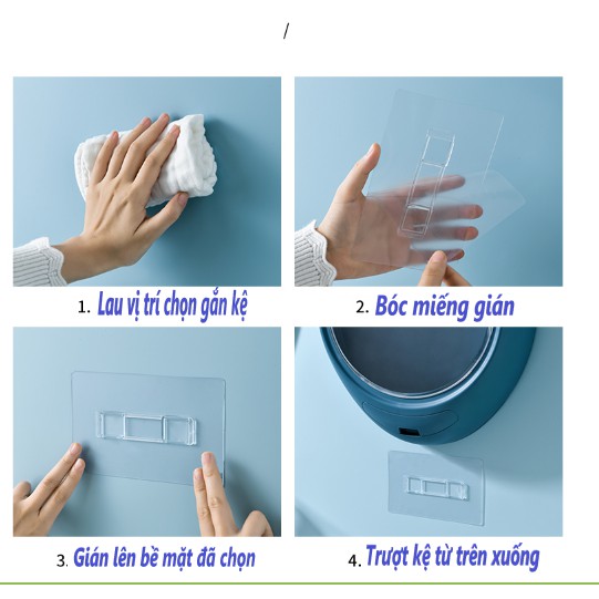 B1.Chọn vị trí cần lắp và làm sạch bề mặt rùi dán miếng băng keo đúng chiều lên tường.