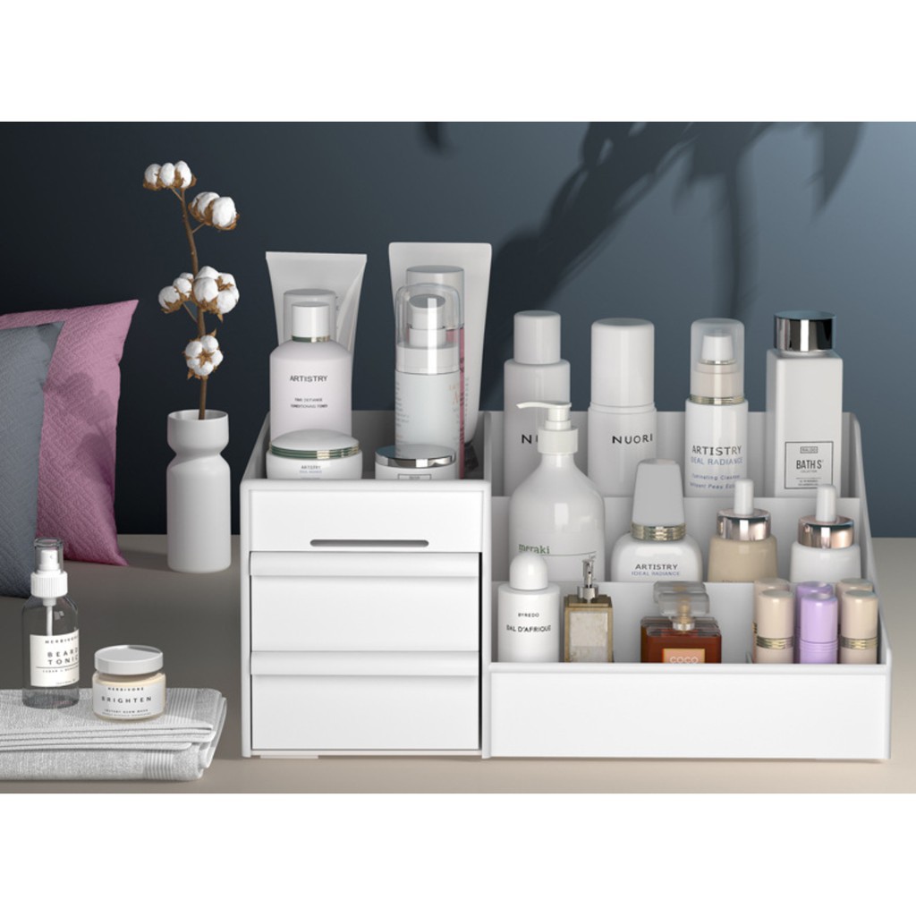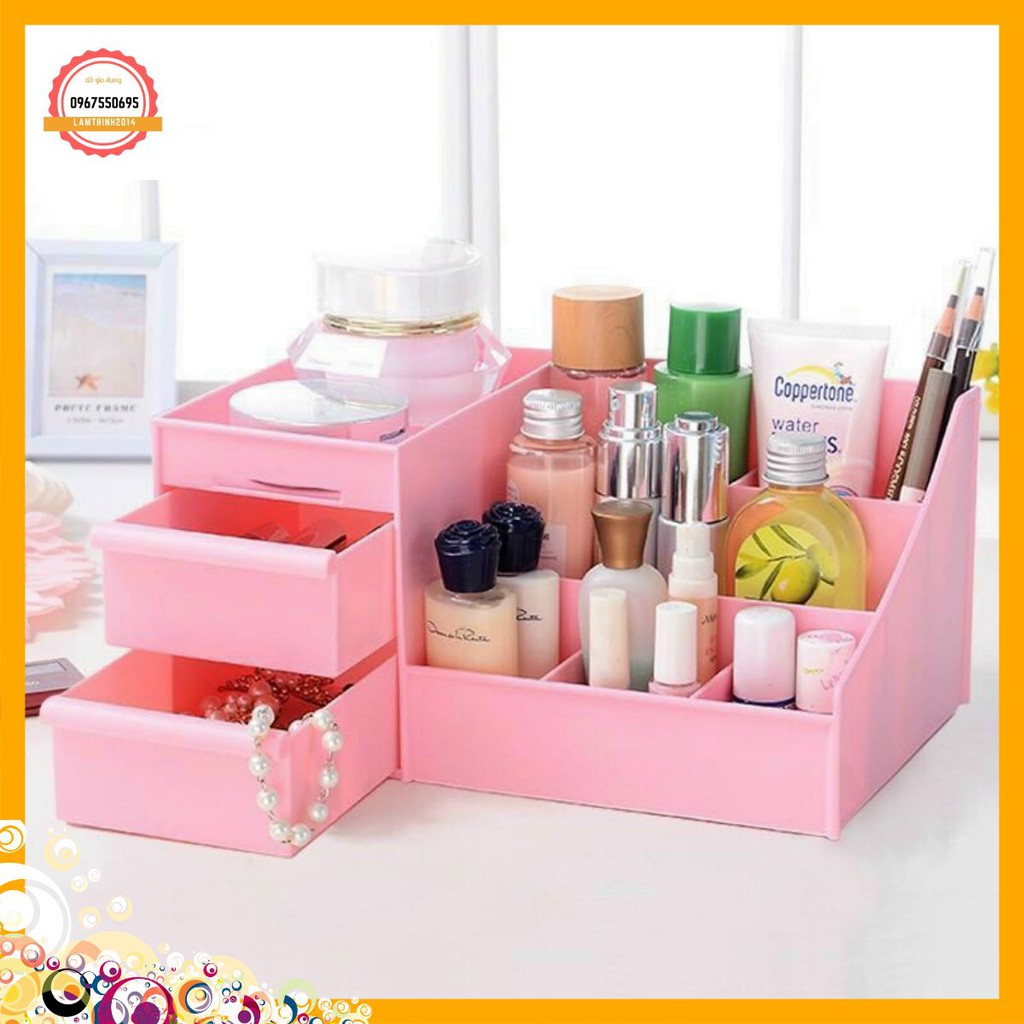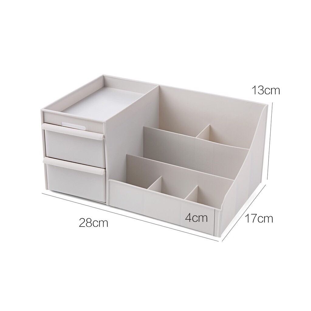 kệ mỹ phẩm , khay đựng đồ cá nhân trang trí bàn hoc đa năng giá rẻShop cam kết bán đúng kích thước như đã mô tả, giao đủ hàng, đúng màu và nguyên vẹn, không vỡ, nứt, méo, bể, cong, vênh đến khách hàng, size lớn nhất là 28.5cm x 18.5cm x 14cm. Với chất liệu nhựa cao cấp, an toàn khi sử dụng và siêu bền kệ để mỹ phẩm là món đồ không thể thiếu của chị em giúp cho không gian bàn trang điểm trở lên gọn gàng và ngăn nắp. Cấu tạo ngăn đựng khoa học, kệ đựng mỹ phẩm đa năng có thể đựng được nhiều đồ như kem nền, kem dưỡng, son phấn và đồ makeup rất tiện lợi. Đặc biệt trong trường hợp quý khách muốn để nước tẩy trang hay toner chai to thì có thể rút một ngăn kéo để lên bên trên để tạo thành 1 ngăn kéo lớn.