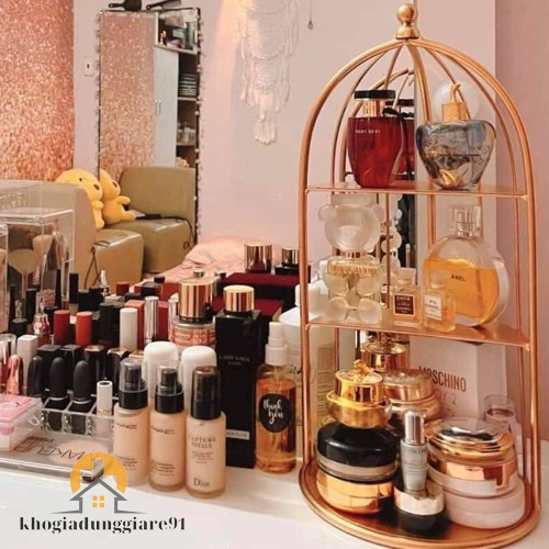 Kệ mỹ phẩm - Kệ mĩ phẩm lồng chim 3 Tầng Decor sang chảnh - 45x22cm