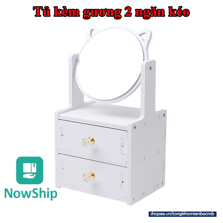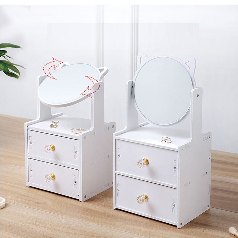Kệ mỹ phẩm kèm gương mèo 2 ngăn kéo [GIÁ SỐC] trang điểm