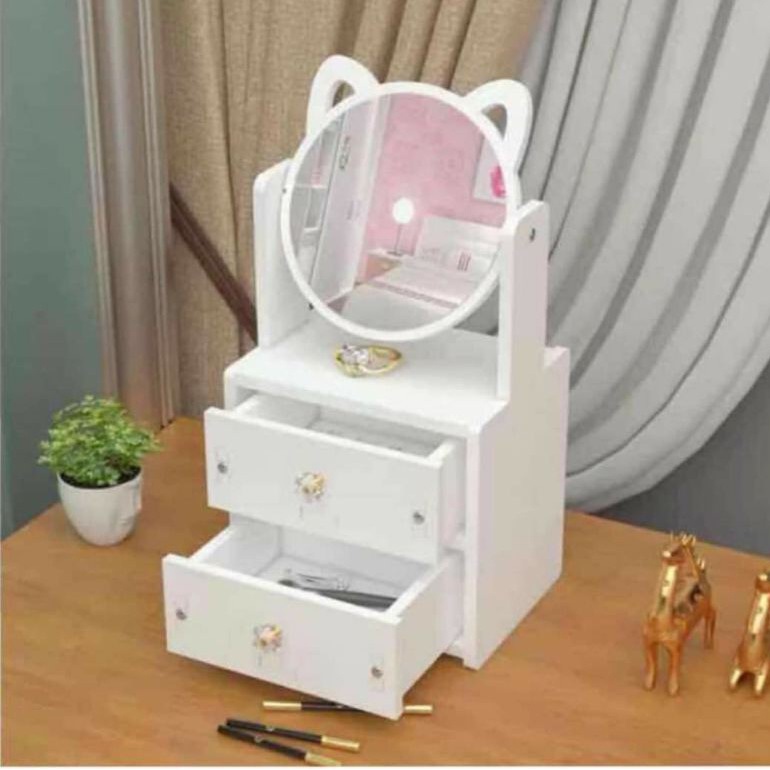 Nhà cửa & Đời sống > Trang trí nhà cửa > Khác || Kệ mỹ phẩm kèm gương mèo 2 ngăn kéo [GIÁ SỐC] trang điểmCòn hàng