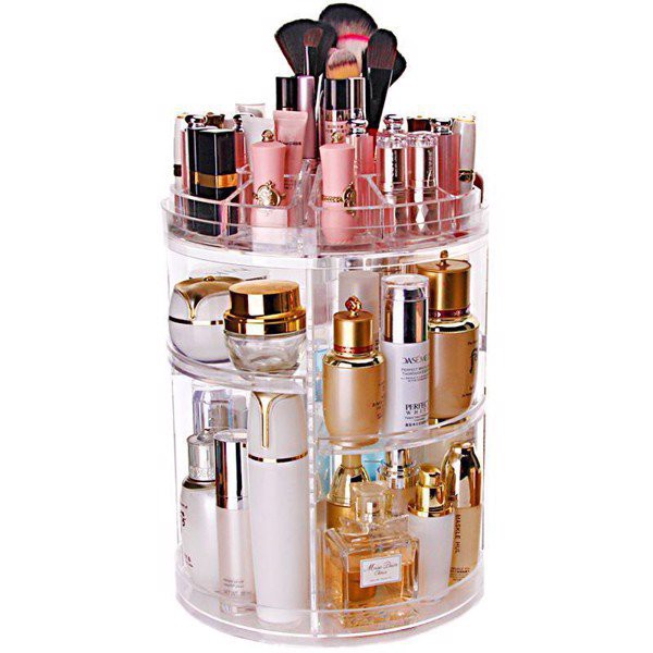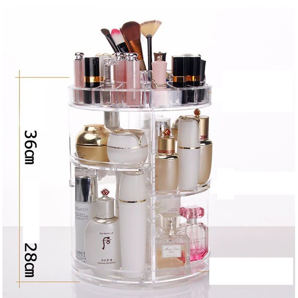 🍀 Kệ để mỹ phẩm trụ xoay 360 độ được ví như một chiếc tủ đựng mỹ phẩm mini với 3 phần chính :
