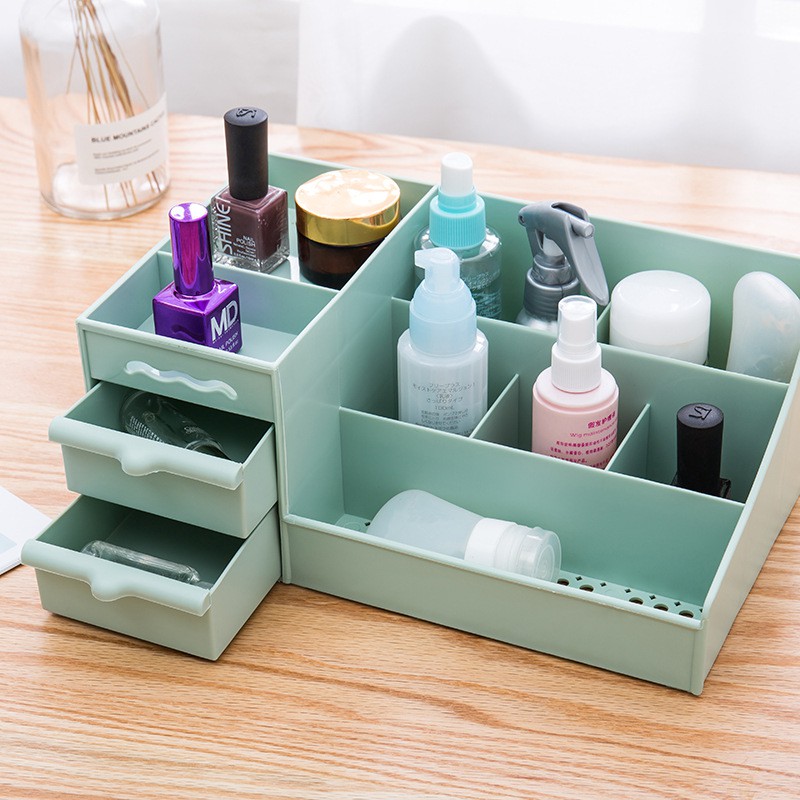 Nhà cửa & Đời sống > Sắp xếp nhà cửa > Kệ sách để bàn || Kệ mỹ phẩm màu xanh kệ đựng dụng cụ văn phòng, nhiều ngăn đa năng, 3 tầng và 2 ngăn kéo, kích thước lớn để bànCòn hàng