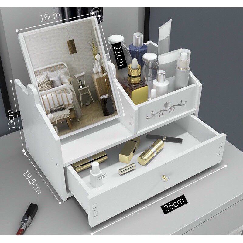 Nhà cửa & Đời sống > Trang trí nhà cửa > Gương || Kệ Mỹ Phẩm Mini Bàn Trang Điểm Mini Để Đồ Trang Điểm Có Kèm Gương vuôngCòn hàng