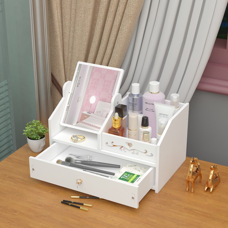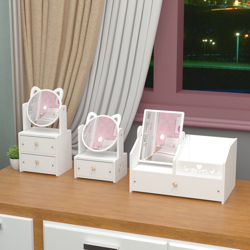 Kệ Mỹ Phẩm Mini Bàn Trang Điểm Mini Để Đồ Trang Điểm Có Kèm Gương vuông